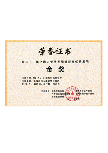 石油鉆桿控制成型加厚技術(shù)上海市科學(xué)技術(shù)獎(jiǎng)三等獎(jiǎng)