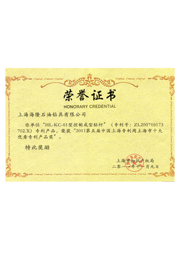 2011年第五屆中國(guó)上海專利周上海市十大優(yōu)秀專利產(chǎn)品獎(jiǎng)