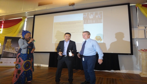 海隆油服尼日利亞公司總經(jīng)理鄭國旗從SPDC WELLS手中接過獎(jiǎng)牌