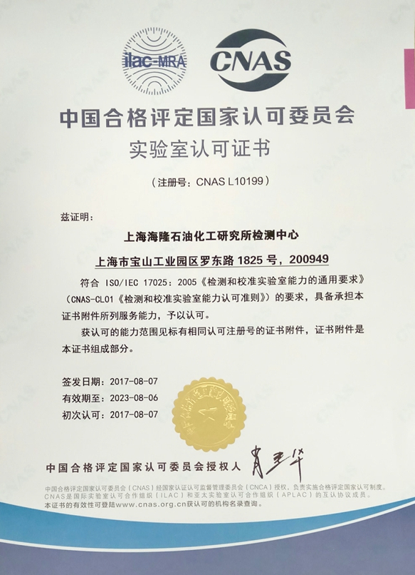 推進實驗室標準化 提高科技研發(fā)質(zhì)量 上海海隆石油化工研究所獲得CNAS實驗室認可證書